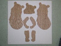 Sand the arms and legs taking a bit off from the top and the bottom. Check that they fit loosely between the back and front pieces. Finish sanding the sides where the drumsander could not reach. Finally roundover all edges. Sand the front and back of the body. Finish sanding the sides where the drumsander could not reach. Finally roundover all exposed edges.