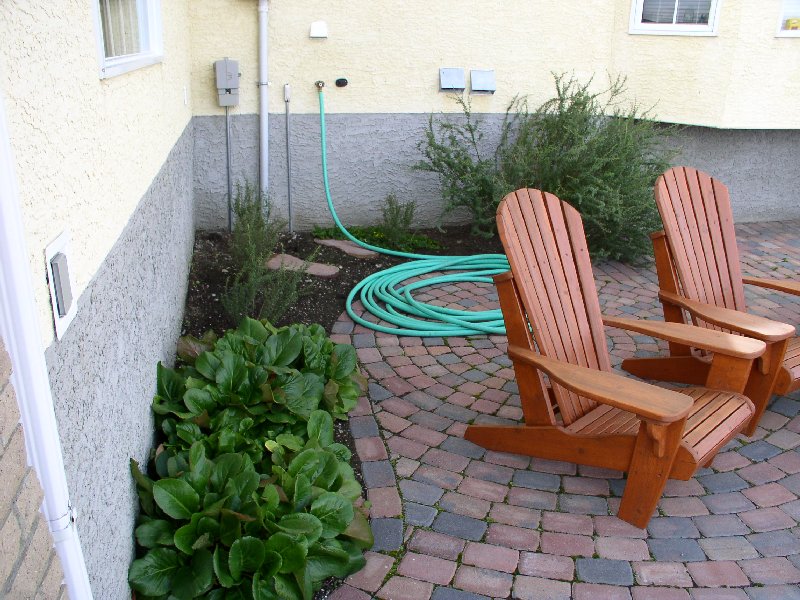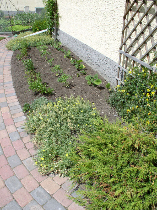 A difficult corner between the house and the garage.