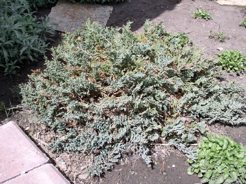 Grows around the corner to the East side as well. Used for shading the root system of the Golden Clematis. Prune in spring to maintain a pleasing shape.